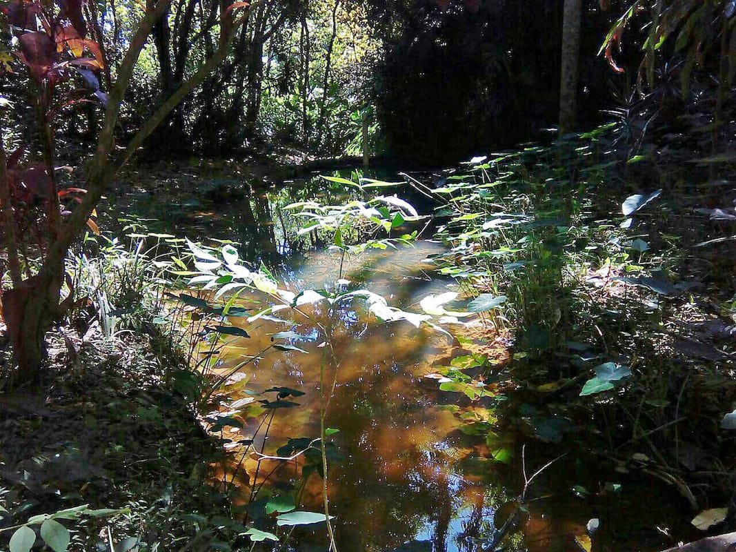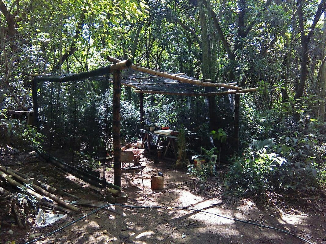 “Houve um movimento em busca de informações que guiassem práticas de plantio agroecológicas”, conta Péricles Lima, monitor que acompanhou o início do reflorestamento no local. O uso de adubo orgânico e o manejo de plantas conforme necessidades da floresta e do plantio são exemplos, conforme conta Péricles. “Hoje, uma equipe de 12 pessoas vem realizando o manejo das plantas existentes para manter a floresta, que está se expandindo, segundo esses fundamentos da agroecologia”, explica.