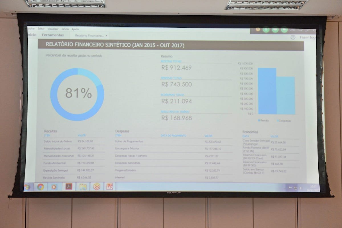 Durante a Assembleia Geral, Michela Brígida, que aceitou o convite para continuar no cargo de Assessora de Comunicação, apresentou o trabalho desenvolvido desde agosto de 2016. Falou sobre os veículos de comunicação da NE, como o Boletim Informativo Sentinela da Floresta, e também das rotinas de trabalho da equipe.