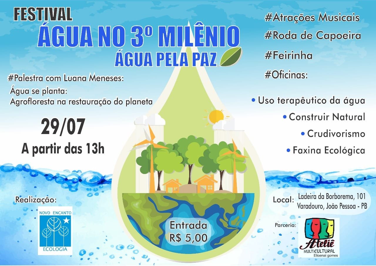 Festival Água no terceiro Milênio, que acontecerá no Ateliê Multicultural em João Pessoa no próximo dia 29, promove palestra sobre sistema de agrofloresta como ferramenta para restauração de áreas degradadas e a produção de água.