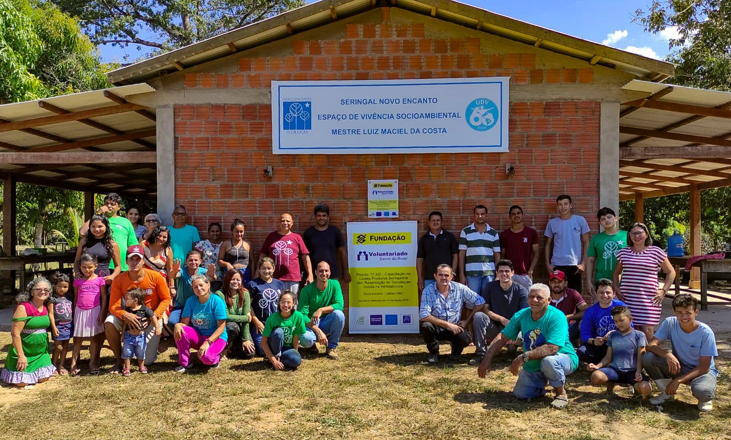 Esse “Espaço” foi construído graças ao Convênio entre a Novo Encanto e a Fundação Banco do Brasil, assinado em agosto/2019: Projeto 17.330 – “Capacitação da cadeia produtiva seringalista com reaplicação de tecnologias sociais na infraestrutura”.
