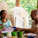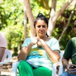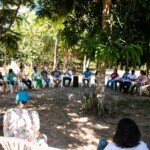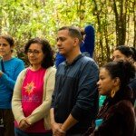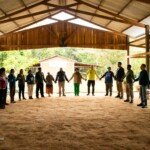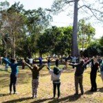 Uma roda formou-se à sombra da samaúma, na manhã do dia 20. Foi a oportunidade de trocar experiências de trabalho, falar sobre as dificuldades e facilidades que os coordenadores regionais estão vivenciando nas regiões e nos núcleos, compartilhar ideias e se emocionar. À tarde, o grupo aproveitou para banhar no rio Iquiri e contemplar os encantos da natureza. À noite, uma conversa em roda da fogueira, sobre meliponicultura (criação de abelhas sem ferrão), seguida por momentos de alegria e cantorias.