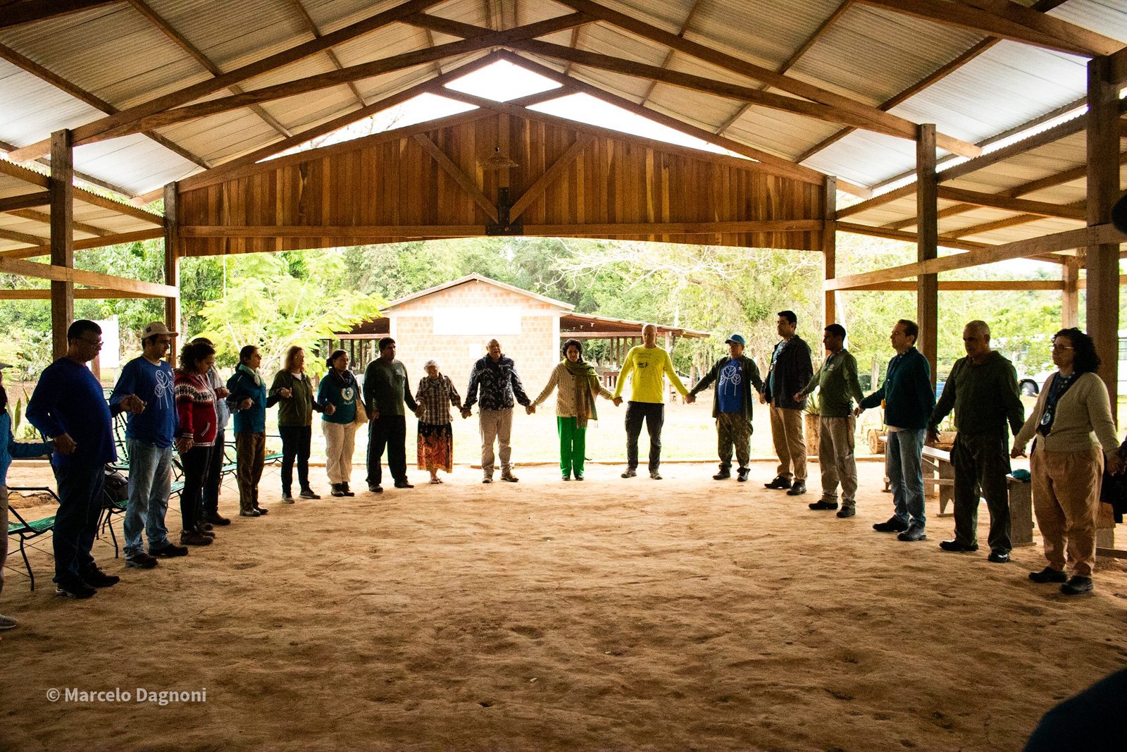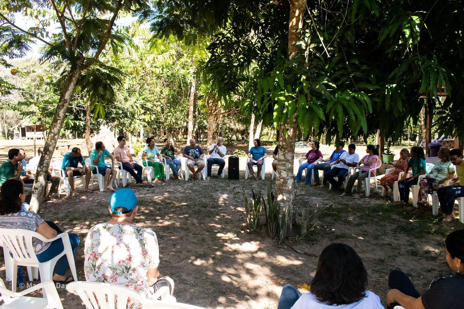 Uma roda formou-se à sombra da samaúma, na manhã do dia 20. Foi a oportunidade de trocar experiências de trabalho, falar sobre as dificuldades e facilidades que os coordenadores regionais estão vivenciando nas regiões e nos núcleos, compartilhar ideias e se emocionar. À tarde, o grupo aproveitou para banhar no rio Iquiri e contemplar os encantos da natureza. À noite, uma conversa em roda da fogueira, sobre meliponicultura (criação de abelhas sem ferrão), seguida por momentos de alegria e cantorias.