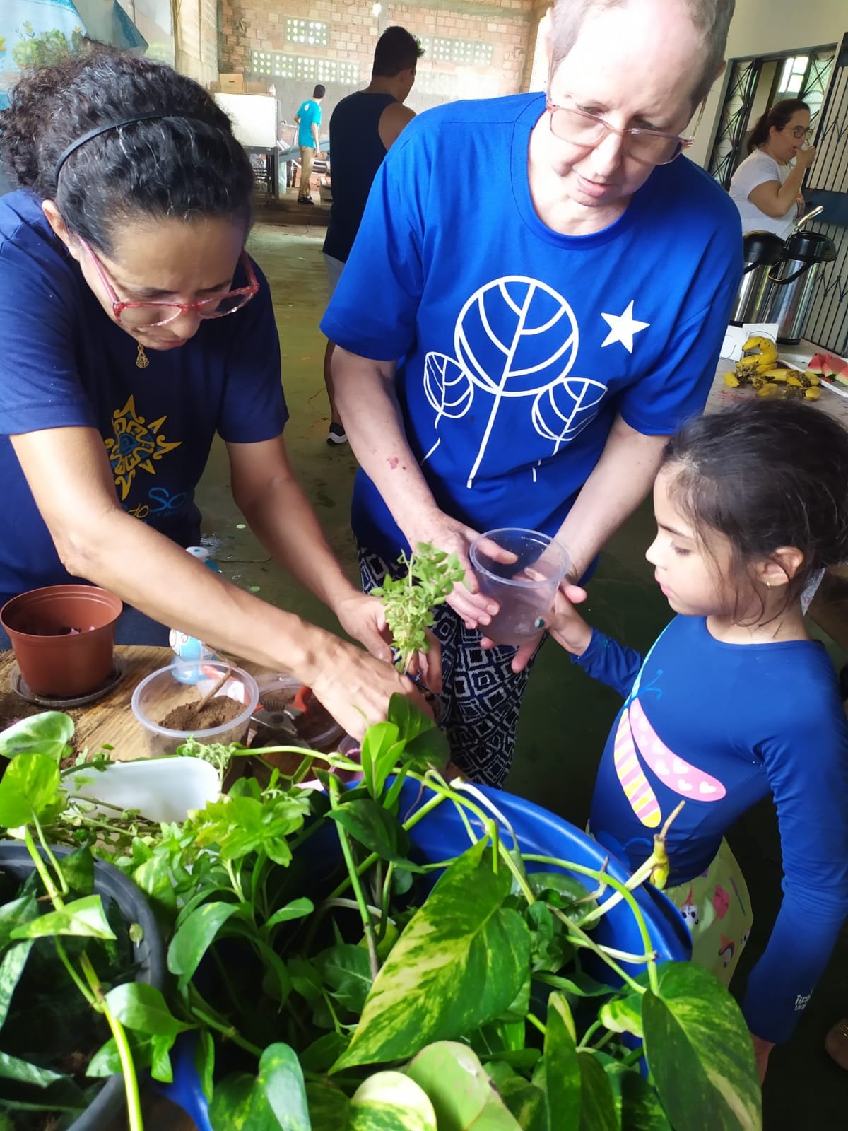 As crianças também fizeram a decoração em vasos, com plantas ornamentais, medicinais e aromáticas, com os materiais disponíveis e houve expressiva participação dos pais na atividade.