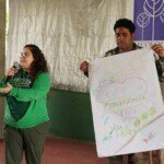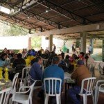 Ainda de manhã a coordenação do encontro promoveu uma vivência de Tai Chi com José de Oliveira (Tito) que proporcionou aos participantes um momento de conexão entre corpo e mente e um clima tranquilo que durou todo encontro. E, em sequência, Raquel Stefanuto, Assessora da Diretoria de Formação Ambiental, conduziu uma dinâmica que envolveu os participantes do encontro na elaboração de possíveis ações que a Novo Encanto pode fazer, a nível nuclear, para reforçar os pilares da sustentabilidade, ABC (Água, Biodiversidade e Cultura). Foram produzidos cartazes com desenhos e mapas mentais retratando as ideias propostas pelos grupos de participantes.
