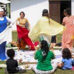 A atividade contou com um momento lúdico sobre as estações do ano, com música e uma roda de conversa sobre as características e importância de cada estação e depois as crianças em grupos produziram pinturas em aquarela e colagem com materiais recolhidos da natureza, como flores, folhas, sementes etc.