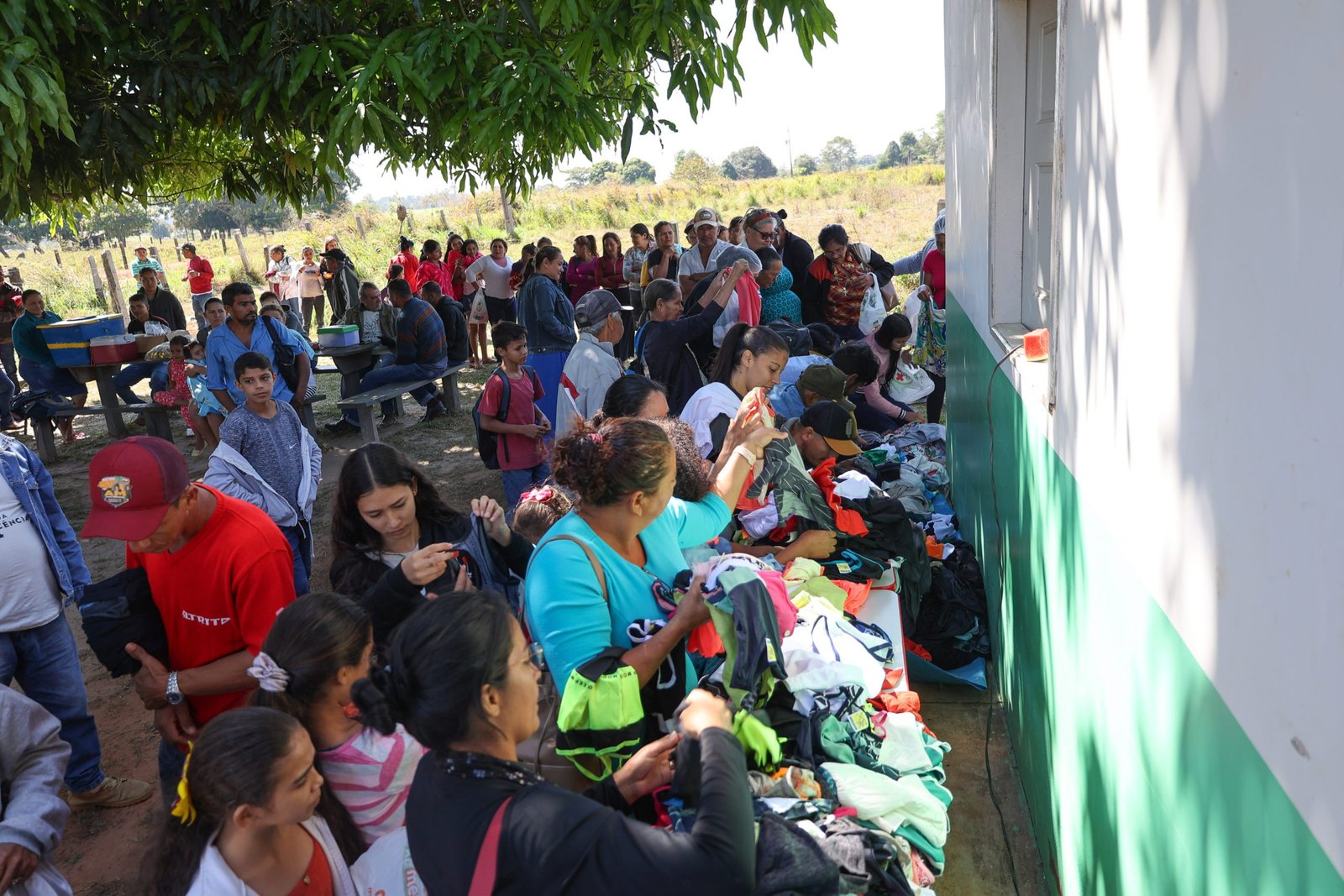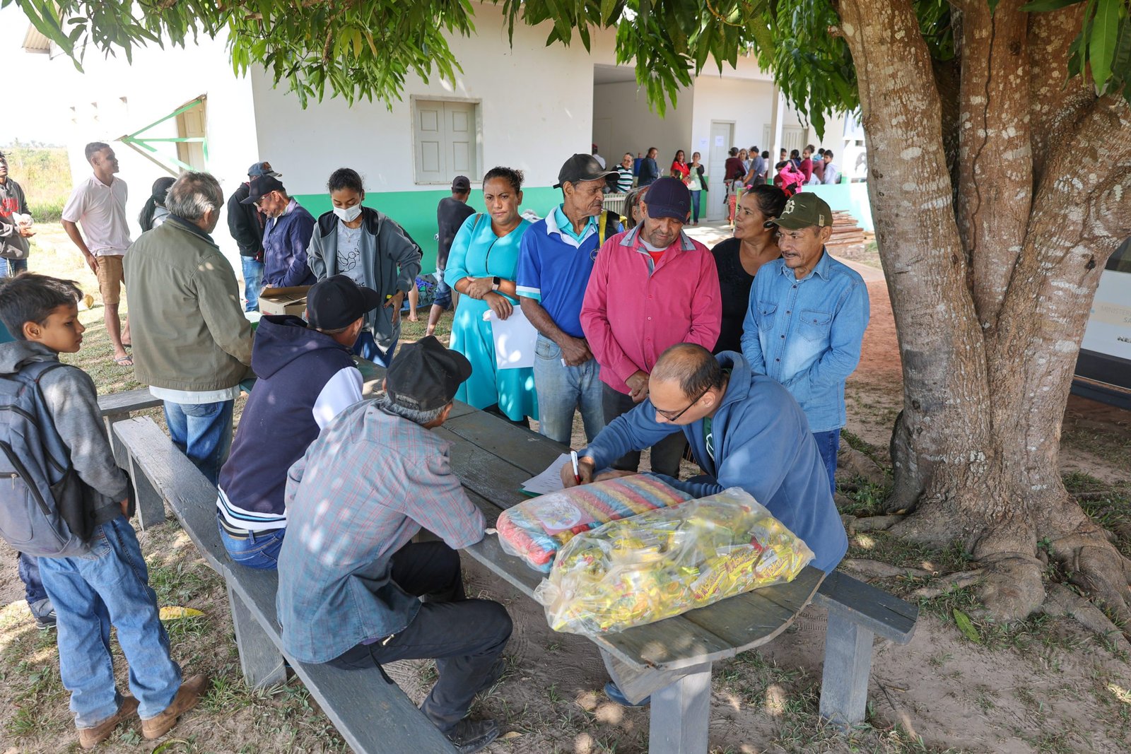 Além disso, houve distribuição de cestas básicas e roupas para as famílias, como forma de apoio às necessidades mais imediatas. A alimentação durante o evento foi oferecida na própria escola, com um lanche reforçado, baixaria e frutas.
