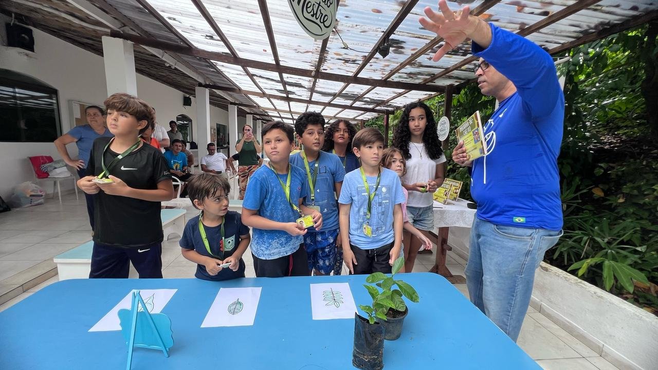 Algumas dessas árvores foram plantadas no terreno do núcleo que localiza-se me uma área de mangue. Luiz Gustavo, monitor da Novo Encanto, apresentou alguns elementos para apresentar as plantas para as crianças e em seguida elas procuraram as árvores no terreno. “Dessa forma elas puderam aprender um pouco mais sobre essas árvores e também sobre a floresta”, explica.